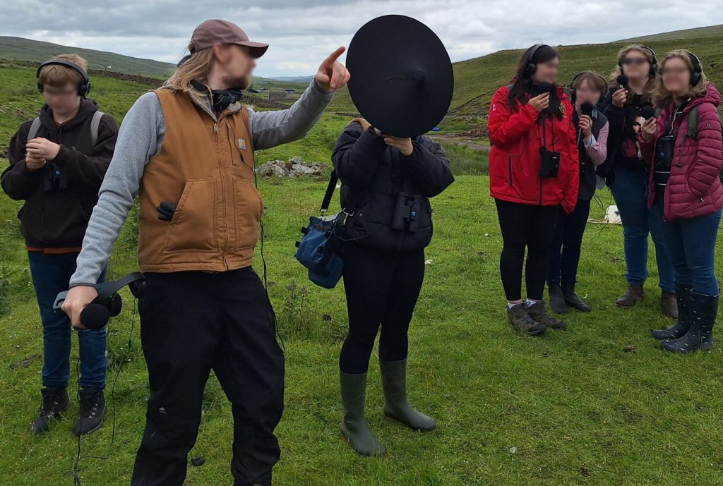 Calling The Curlew (2024) took place in meadows and rush pastures near Baldersdale in the North Pennines National Landscape. It involved collaborating with a poet and engagement officer to inspire groups of local young people to creatively produce field recordings of breeding waders and the dawn chorus, create original poetry, create lively interviews with local farmers & partner organisations and produce podcasts. An innovative approach was developed called “Owl Ears”, which activated the young people’s curiosity through listening to the breeding waders with field recording equipment. The farmer, ecologist, environmentalist, and landowner interviews have given me some understanding of the issues they face. Upon reflection a provocation in the form of a sound art installation “Museum of Portable Meadows“ was developed. This was exhibited at Meadows Day ‘24, Low Way Farm, which generated emotive interviews with audiences.