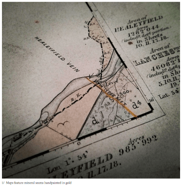 Gold Lines Are Mineral Veins is an audio-visual installation built to highlight the vast networks that humans have carved out underground. The project was created in response to the mapping archive of the Mining Institute, Newcastle’s library. It looked at the “fuzzy edge” of the archive, materials owned by Mining Institute members that might potentially be donated and enter the archive at some point in the future.