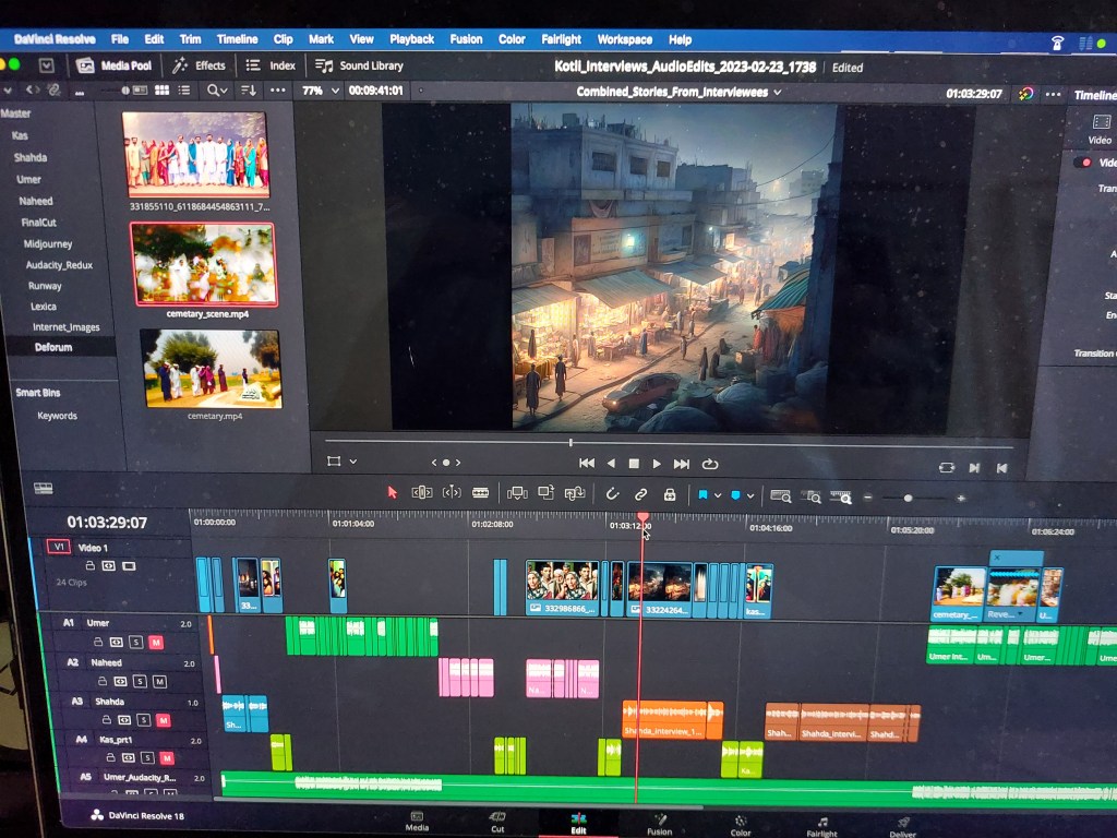 I collaborated with Humira Imtiaz to develop AI prompts, record some of the interviews, use AI tools to transcribe and create paper edits of the audio, use AI tools to process audio and improve audio quality (some of the interviews were recorded using a mobile phone over Whats App and featured significant levels of background sound).
